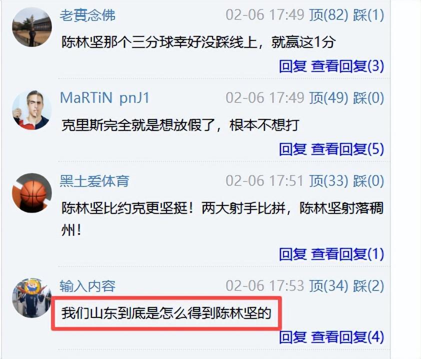 与浙江男篮比赛最后1分钟,当陈林坚在弧顶坚决出手投进制胜三分球后山东男篮提前将胜利揣进了兜里,山东球迷不禁再次发出灵魂拷问:我们山东到底是怎么得到陈林坚的?